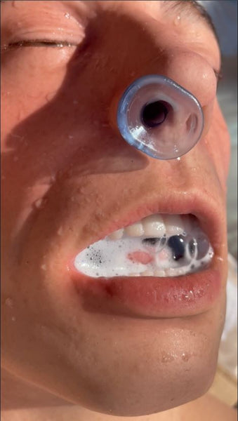 Submerging the manikin creates an amount of water in the oropharynx, the middle part of the throat behind the mouth, which can be removed using manual or suction methods.