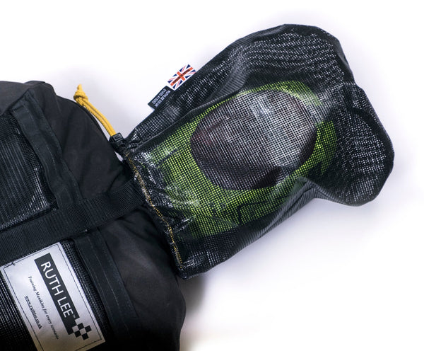 - Strong webbing loop at the back allows easy handling, storage and suspension for drying.